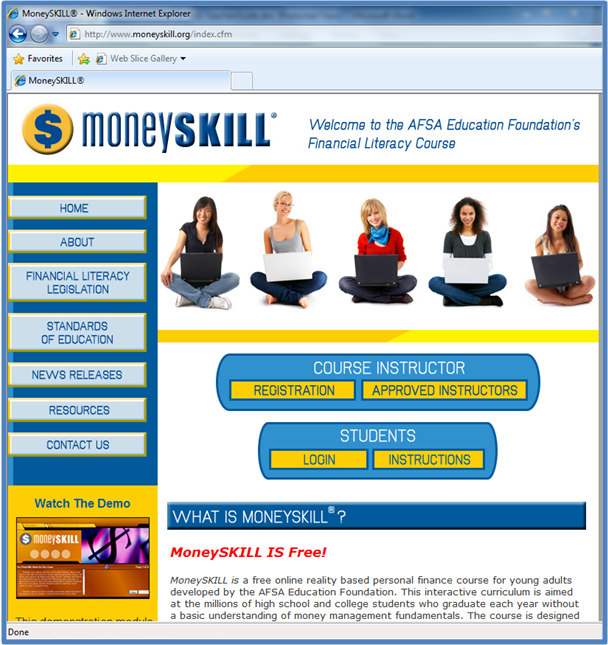 ![]() A free online reality based personal finance course for young adults developed by the AFSA Education Foundation. MoneySKILL educates middle school students on the basic understanding of money management fundamentals in the content areas of income, expenses, saving and investing, credit and insurance. TEACHER REVIEW |